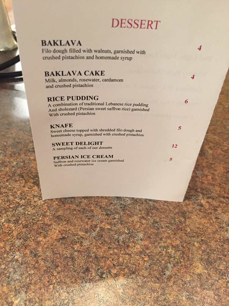 A combination of traditional Lebanese rice pudding and sholezard, Persian sweet saffron rice. Garnished with crushed pistachios.